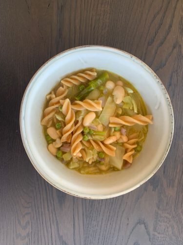 Ontdek de smaakvolle en voedzame Groene minestrone, een heerlijk lichte soep boordevol verse groenten, witte bonen en pasta. Perfect voor een snelle doordeweekse maaltijd of een gezellig diner. De frisse pesto- en citroentoets maken deze variant onweerstaanbaar en verrassend lekker!