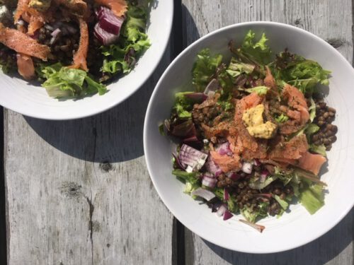 Zalm en mosterdsalade