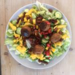- Snipper de ui en knoflook en snijd de courgette in halve maantjes.