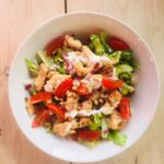 - Schep de soep in de soepkom en garneer met gesneden stukjes zalm.