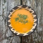 - Pureer het geheel met een staafmixer of blender tot een gladde soep.