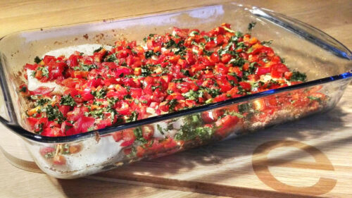 Verwen jezelf met deze heerlijke Kabeljauw bruschetta! Malse kabeljauwfilet, subtiel gebakken met een krokante beschuitlaag, wordt afgetopt met een levendige, frisse bruschetta van tomaat, paprika en kruiden. Een verrassend lichte en smaakvolle maaltijd die perfect is voor elke gelegenheid.
