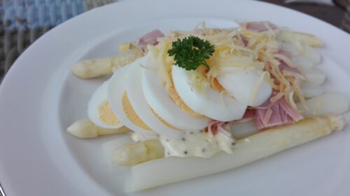 Ontdek de verfijnde smaak van deze heerlijke 'Asperges met mosterd/mayo vinaigrette'! Met verse asperges, perfect gekookte eieren en ham, allemaal overgoten met een pittige mosterd-mayonaise dressing. Dit eenvoudige en snelle recept is ideaal voor een lichte lunch of elegant voorgerecht. Een ware traktatie voor de smaakpapillen!
