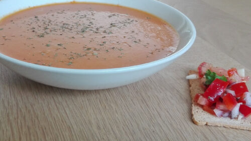 Duik in de heerlijke smaken van onze Paprika soep met tomatensalsa! Deze levendige en romige soep, rijk aan zoete paprika, krijgt een frisse twist door de zelfgemaakte, pittige tomatensalsa. Perfect voor een lichte lunch of een verrukkelijk voorgerecht, deze combinatie brengt een zonnetje op je bord!