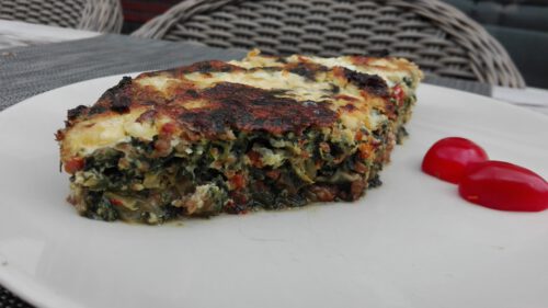 Ontdek de verrukkelijke Grieksetaart, een hartige ovenschotel vol mediterrane smaken. Deze eenvoudig te bereiden taart combineert sappig gehakt met verse spinazie, romige room en Hüttenkäse in een smakelijke eiercustard. Perfect voor een voedzame maaltijd doordeweeks of om te delen. Laat je verrassen door deze heerlijke, makkelijke Griekse twist!