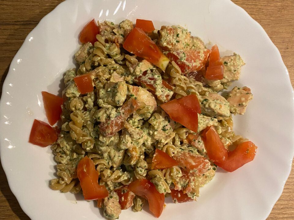 - Hak de bieslook fijn. Voeg de bieslook, peper, zout en extra olijfolie naar smaak toe aan de salade. Roer alles goed door.