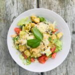 - Snijd de zoete aardappel in stukjes en voeg deze samen met de linzen toe aan het kokende water.